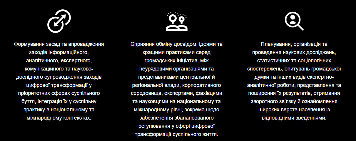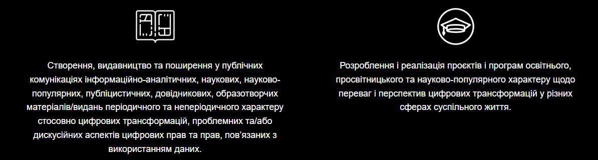 serves as a collaboration and communication hub for both bringing international norms and practices on data and digital rights to Ukraine and showcasing the experience of Ukraine and other CEE countries in the field of social implications of technology on the society worldwide.